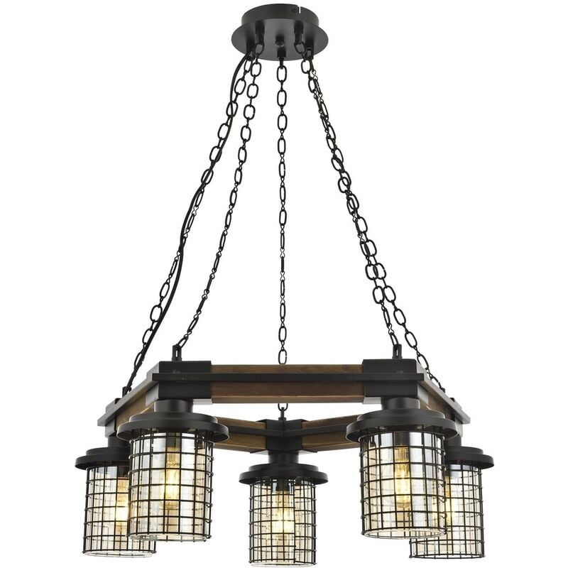 Lampada da soffitto Struttura in metallo Paralume in vetro Altezza: 80 cm Diametro: 50 cm Tipo di filo: 5 x E 27 Max 60 W Colore: nero