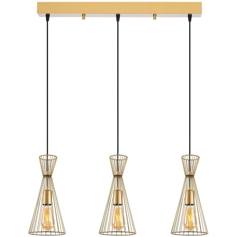 Lampada da soffitto Struttura in metallo Paralume in metallo Diametro del paralume: 15 cm Altezza paralume: 32 cm Misure: 68 x 15 x 125 cm Dimensioni della base: 58 x 6 cm Altezza della base: 4 cm Lunghezza cavo: 90 cm IP20 Tipo di filettatura: 3 x E27 Max 40 W Altezza regolabile Colore: oro brillante