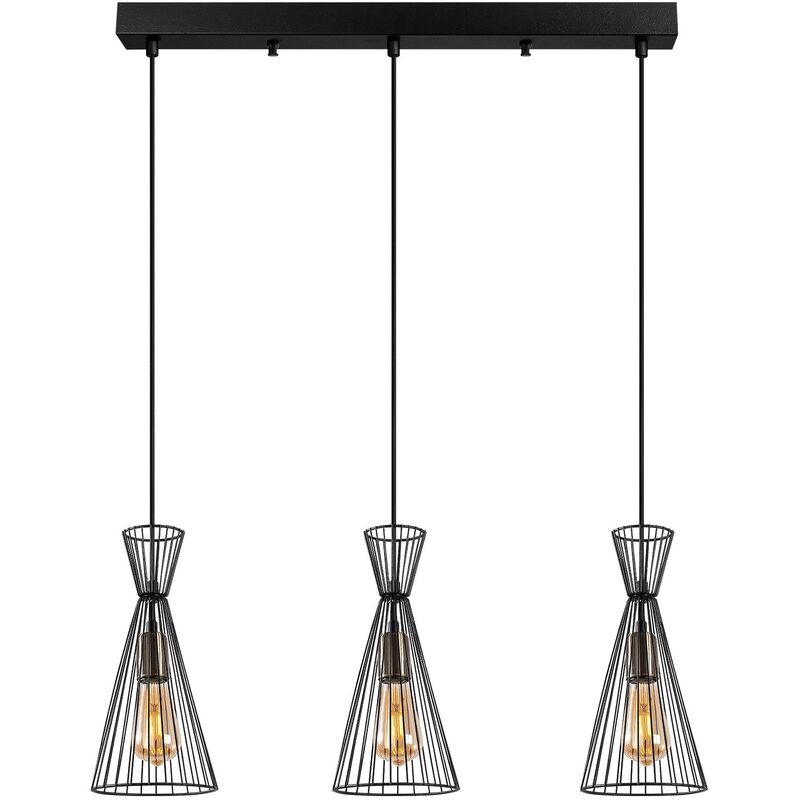Lampada da soffitto Struttura in metallo Paralume in metallo Diametro del paralume: 15 cm Altezza paralume: 32 cm Misure: 68 x 15 x 125 cm Dimensioni della base: 58 x 6 cm Altezza della base: 4 cm Lunghezza cavo: 90 cm IP20 Tipo di filettatura: 3 x E27 Max 40 W Altezza regolabile Colore: nero