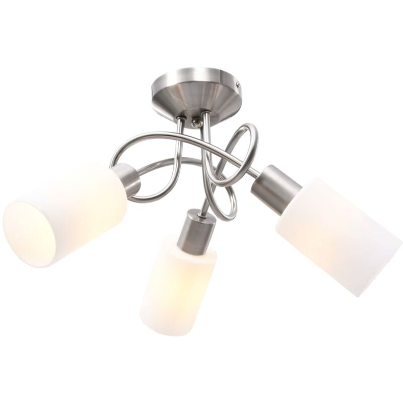 Questo esclusivo lampadario si distingue per la sua piacevole semplicità. Questa lampada può essere facilmente montata su qualsiasi soffitto grazie alla resistente base in metallo. I tre tubi attorcigliati in acciaio cromato e i paralumi dalla forma a cono completano un look elegante. La finitura cromata satinata conferisce a questa lampada uno stile contemporaneo e la rende perfetta per il soggiorno o la camera da letto, indipendentemente dal loro stile. Il prodotto è facile da pulire con un panno umido. Questa lampada può essere assemblata con facilità. Colore: Bianco Materiale: Acciaio cromato, ceramica Dimensioni complessive: 50 x 27,5 cm (L x A) Dimensioni paralume: 12 x 8 cm (? x A) Con 3 paralumi a forma cilindrica Tensione: 220-240 V~ Frequenza: 50 Hz Max. Potenza: 3 x 40 W Tipo di attacco: E14 Con 3 paralumi a forma cilindrica Assemblaggio richiesto: Sì Nota: Questo articolo non include le lampadine