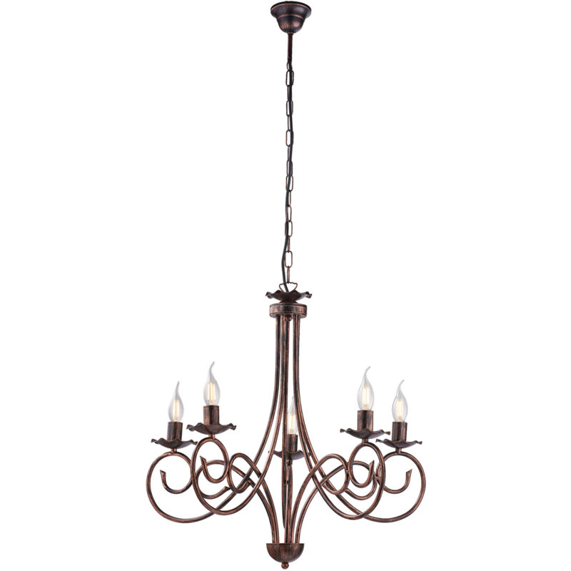 Lampadario in ferro laccato nero con decorazione rame antico 5 luci