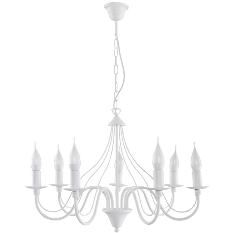 Dettagli del prodotto Materiale: Metallo Dimensioni: larghezza: 600 mm, profondità di sospensione: 800 mm, lunghezza: 600 mm Attacco: 7x E14 fino a. 40 Watt Classe di protezione dagli spruzzi: IP20 Colore: Bianco Peso: 3990 grammo