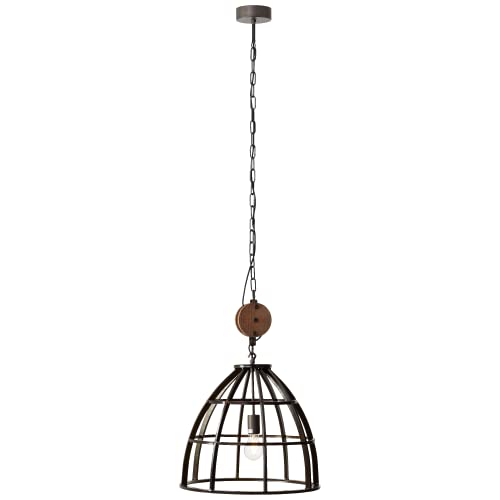 Lampadario rustico a sospensione, diametro di 47 cm, 1 x E27, massimo 60 Watt, in metallo/legno nero anticato
