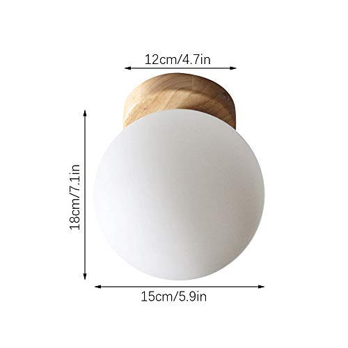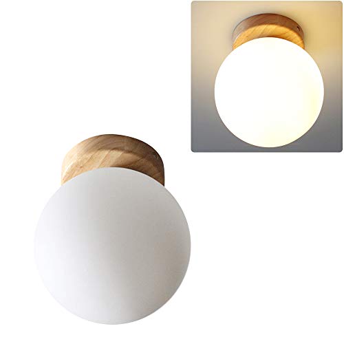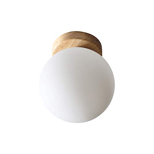 ZZM - Lampadario a sfera rotonda, lampada da soffitto a sfera bianca latte, in legno massiccio montato in vetro, semplice lampada a sospensione moderna