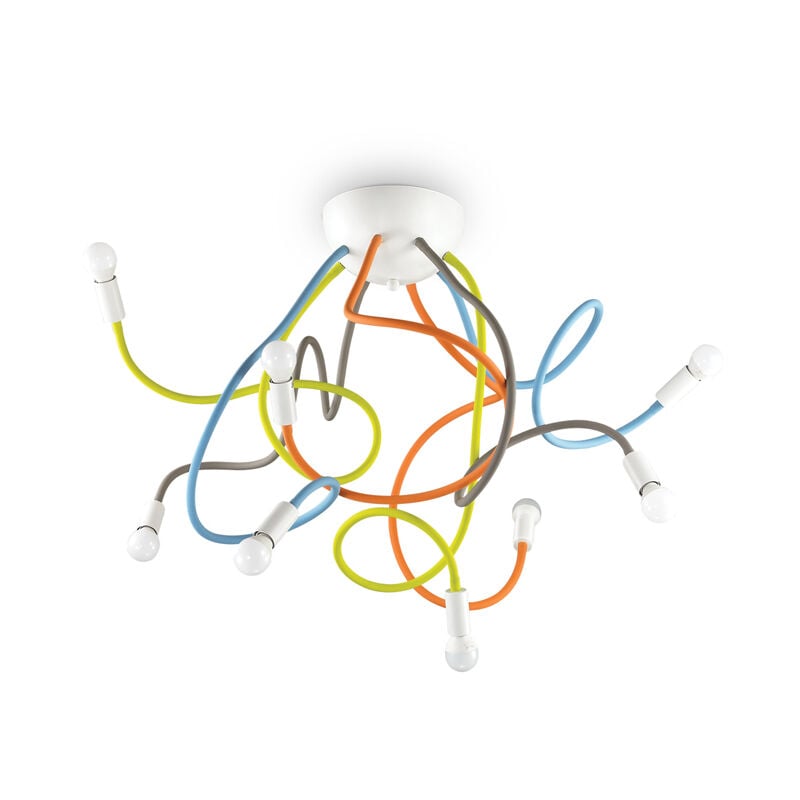 Collezione Multiflex GROVIGLI DI LUCE MULTICOLOR Plafoniera a 8 luci con montatura in metallo rifinito con vernice opaca. Bracci flessibili rivestiti di gomma.