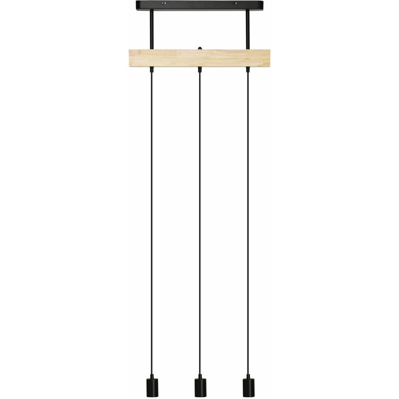 Lampada a Sospensione Lampadario a Sospensione 50x8x33 cm con 3 Lampadine in Legno e Metallo Nero Illumina i tuoi spazi con eleganza scegliendo questo lampadario a sospensione . Con il suo elegante stile industriale che unisce legno e metallo, ti offre un'illuminazione ottimale grazie ai 3 punti luce. La base di attacco al soffitto è robusta e garantisce un fissaggio sicuro con gli accessori inclusi. Perfetto per soggiorno, salotto e camera da letto, questo lampadario vintage renderà unici i tuoi spazi. STILE INDUSTRIALE: Questo lampadario a sospensione ha un design semplice ed è realizzato in legno e acciaio. Perfetto da usare in cucina, soggiorno, salotto o camera da letto ALTEZZA REGOLABILE: Puoi regolare la lunghezza del cavo di ogni lampadina, per adattare questo lampadario moderno alle tue esigenze SOLIDO E ROBUSTO: Il nostro lampadario vintage ha una robusta struttura in metallo e un pannello in legno di albero della gomma, che garantiscono stabilità. La connessione al soffitto