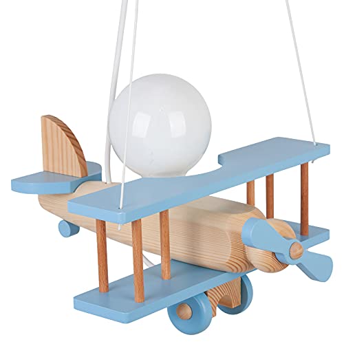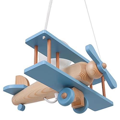 IPP Lampadario a Sospensione per Cameretta Bimbi, Lampada Aereo in Legno Colorato, 32x30 cm (Celeste - Legno)