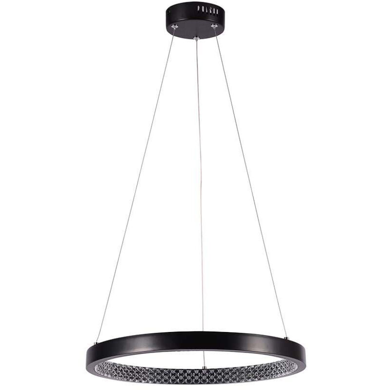 Lampadario LED a Sospensione Circolare 19W in Metallo Colore Nero d: 40cm h: 108cm 3000K