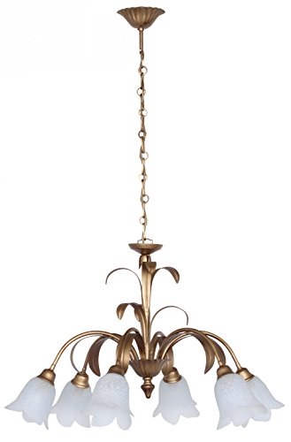 Lampadario a sospensione classico in Ferro Battuto Finitura oro/antico per interni AURORA Made in Italy Prodotto da Valastro Lighting