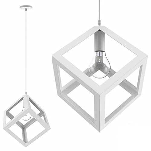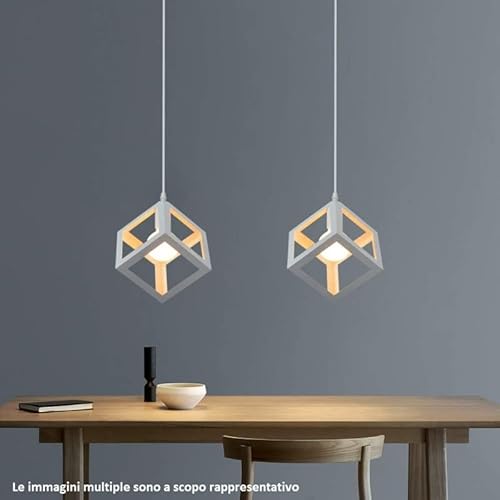 Lampadario a sospensione cubo attacco E27 pendente cubico design moderno bianco nero portalampada geometrico in metallo (Bianco)