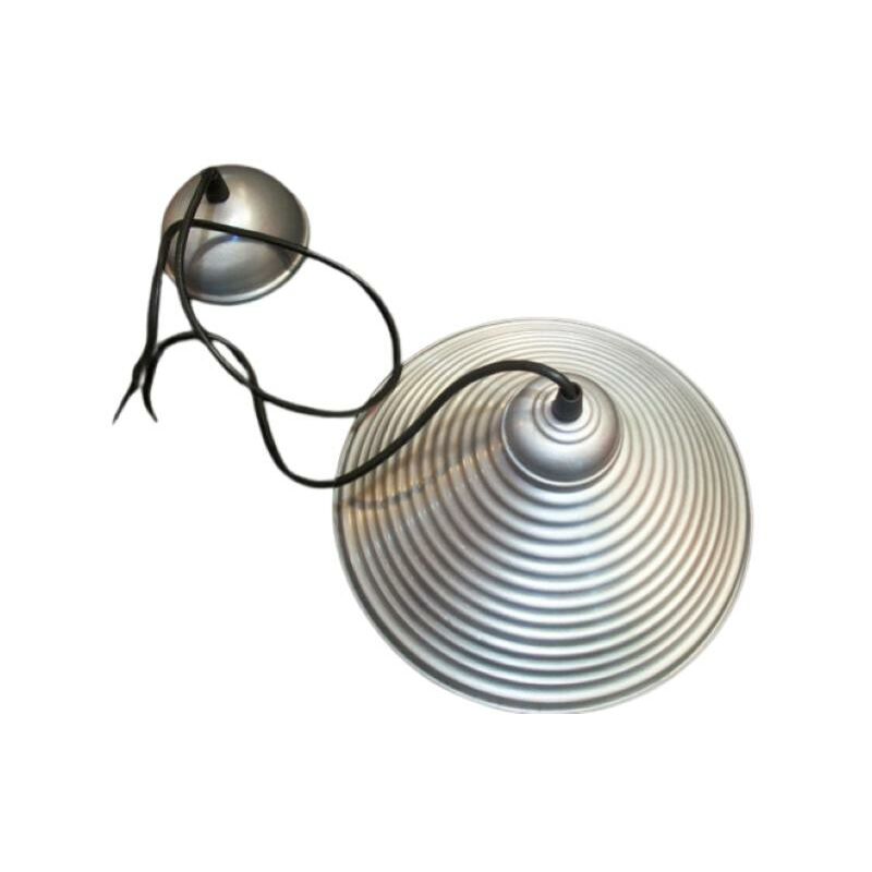 LAMPADA A SOSPENSIONE PER INTERNI CON DIFFUSORE IN ALLUMINIO RIGATO E CAVO NERO;