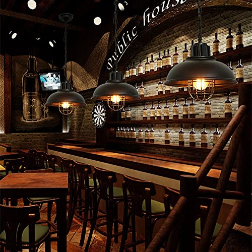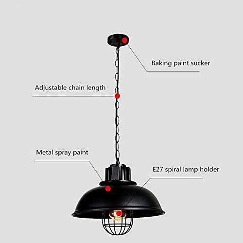 Lampadario a Sospensione Industriale, Lampada a Sospensione Vintage in Metallo, E27 Lampadario Paralume con Griglia Stile Retro Industriale Ceiling Light Φ 33cm per Bar Decorazione Ristorante (Nero)