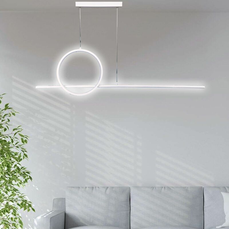 Lampadario LED a Sospensione DESIGN Moderno - MAKA Ecco una descrizione dettagliata del nostro straordinario lampadario LED a sospensione, un'elegante aggiunta per salotti moderni, uffici e attività commerciali che desiderano un tocco di stile contemporaneo. Un mix perfetto di estetica raffinata e funzionalità avanzata, questo lampadario LED soddisfa le esigenze di illuminazione di ambienti sofisticati, combinando materiali di alta qualità con un design elegante e versatile. **Design Moderno e Materiali di Qualità:** Realizzato con una fusione di PVC e alluminio, questo lampadario LED a sospensione incarna un design minimalista ed elegante che si adatta perfettamente a qualsiasi arredamento moderno. La combinazione di questi materiali di alta qualità conferisce al lampadario un aspetto raffinato e contemporaneo, garantendo anche la durata e la resistenza nel tempo. **Opzioni di Luce Personalizzabili:** Offriamo due diverse opzioni di temperatura del colore per soddisfare le esigenze