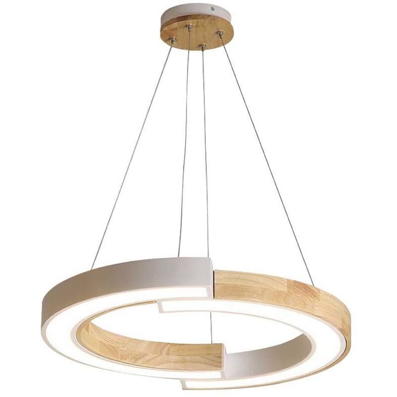 Lampadario LED a Sospensione con 2 Mezzaluna 32W in Legno Colore Bianco 43*37*112cm 3000K