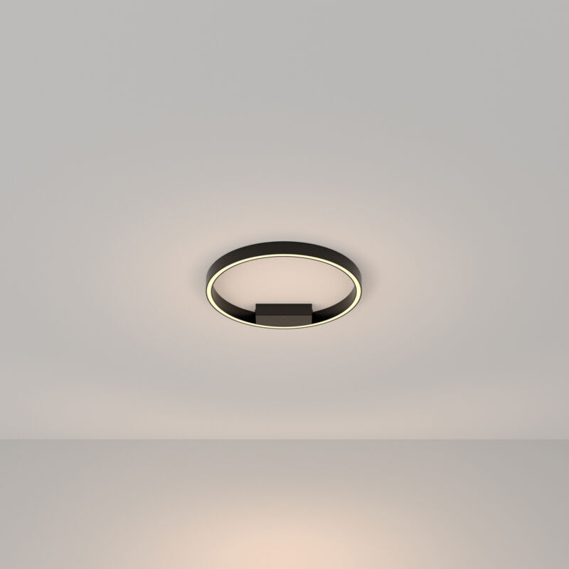 Collezione Rim IL CERCHIO LUMINOSO CHE FLUTTUA IN CASA Lampadario a Sospensione Moderno Rim 2 luci Led 25W armatura in Alluminio Nero 3000K IP20 D.40 x H.3,5 cm. Corpo in metallo. Forma circolare alla moda. Applique con luce riflessa. Sorgente luminosa LED.