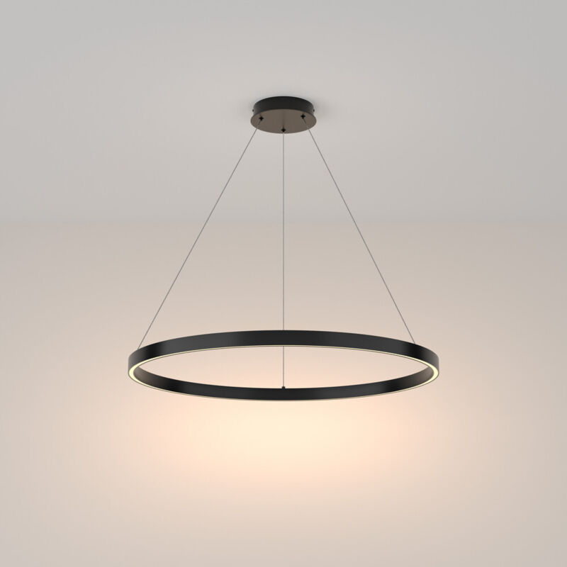 Collezione Rim IL CERCHIO LUMINOSO CHE FLUTTUA IN CASA Lampadario a Sospensione Moderno Rim luce Led 51W armatura in Alluminio Nero 3000K IP20 D.80 x H.10-120 cm. Corpo in metallo. Forma circolare alla moda. La posizione degli anelli dei modelli a sospensione è regolabile. Applique con luce riflessa. Sorgente luminosa LED.