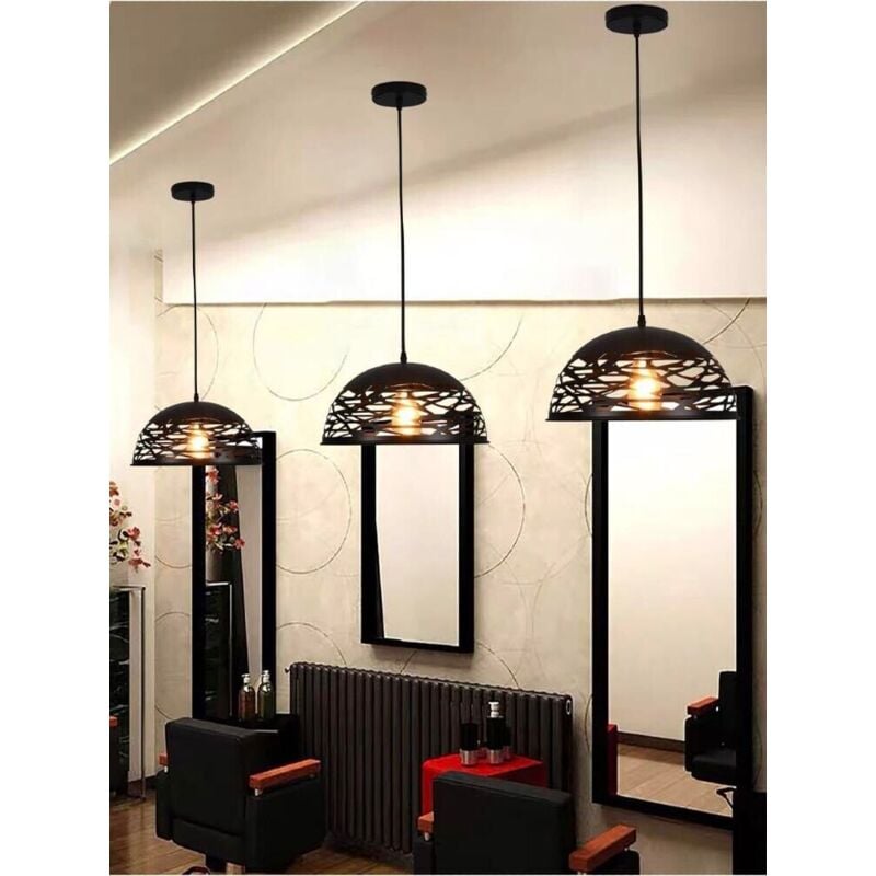 Lampadario a sospensione paralume in metallo traforato portalampada e27 nero Lampadario stile moderno cmposto da un paralume traforato in metallo per un emissione di luce a 360 . Lunghezza cavo totale 120 cm circa (regolabile in base alle proprie esigenze) Caratteristiche: Alimentazione: 230v Portalampada per lampadine E27 (lampadina non inclusa). Dimensioni: Lunghezza cavo totale 120 cm circa (regolabile) Diametro base soffitto 12cm Diametro paralume 36cm Colore: Nero Contenuto della confezione: N 1 Lampadario senza lampadina