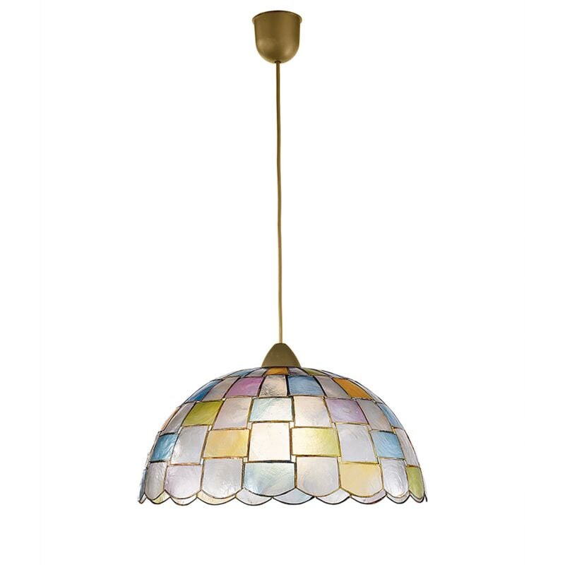 Sospensione Tiffany in madreperla con cavo in oro. Colore: Multicolore Materiale: Madreperla Tipo sorgente o lampadina richiesta: E27 Grado di protezione da corpi solidi e acqua: IP20 (solo uso interno) Dimensioni: 120x40x21 cm. Il brand Luce Ambiente e Design pone l'accento su tendenze, design italiano e qualità dei materiali. Tutto ciò che serve per illuminare e allo stesso tempo arredare i tuoi ambienti domestici. Vasta selezione di illuminazione da soffitto, parete o superifice. Lasciati affascinare dalle linee sinuose, accostamenti audaci e un tocco di tecnologia che non guasta mai. La Gruppo FT si impegna nella ricerca dei migliori prodotti da offrire ai propri clienti, focalizzandosi su velocità e servizio post-vendita.