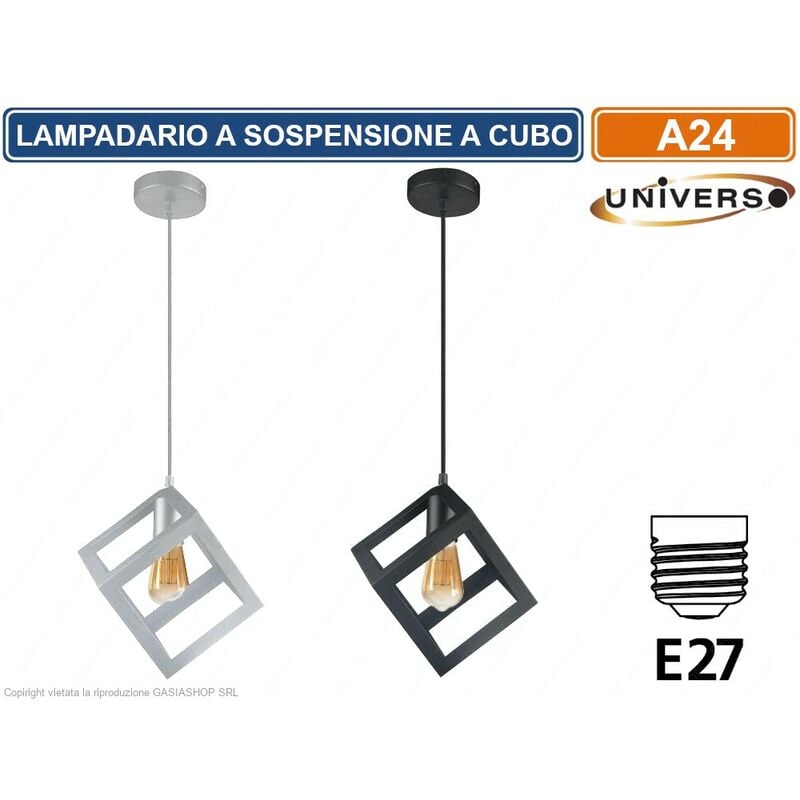 Lampadario in alluminio, dalla forma a cubo col copro illuminante totalmente aperto Il pendente è dotato di portalampada E27 ed è disponibile nelle varianti di colore: Bianco opaco o nero opaco Il fissaggio avviene in modalità standard, bisogna collegare il lampadario alla linea elettrica (facendo sempre attenzione che sia completamente scollegata) e coprire gli attacchi con la coppetta completa di stringicavo. Il cavo in dotazione è lungo circa 1 metro in modo da poterlo ridurre alla lunghezza desiderata. Dimensioni: 16cm per lato Lampadina consigliata: Globo E27 vintage filamento non inclusa nella confezione