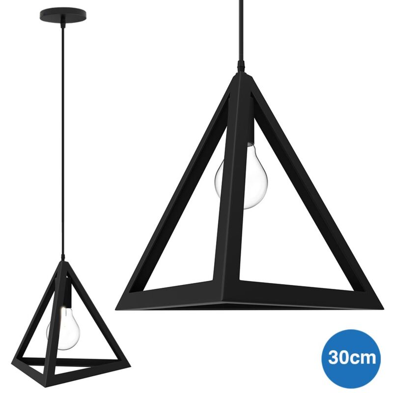 Lampadario Lampadario Lampada Sospensione Piramide 30cm Design Moderno Paralume Nero Dai un tocco moderno alla tua casa con il nuovissimo lampadario a sospensione a forma di piramide. Design moderno e minimale, con paralume a forma di piramide dalle dimensioni di 30 x 30cm realizzato interamente in metallo di altissima qualità in un elegantissimo colore nero che dona un tocco unico agli ambienti di casa tua, fornito inoltre di singolo portalampada per lampadine E27 di massimo 40W. La lampada a sospensione piramide di è facile da installare grazie al kit di montaggio incluso nella confezione ed è utilizzata sopratutto per l'illuminazione di Cucina, camera da pranzo, soggiorno e camera da letto. Questo lampadario a sospensione si adatta perfettamente a qualsiasi tipo di arredamento valorizzando la tua stanza e ricreando un atmosfera calda ed accogliente. I materiali utilizzati e il suo particolare design rendono questa bellissima lampada un complemento d'arredo di altissima qualità
