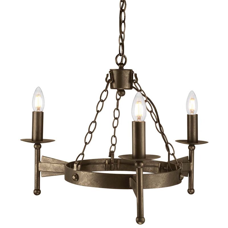 Descrizione Una gamma davvero medievale, realizzata a mano in ferro pesante. Ogni pezzo è dipinto a mano individualmente con un'esclusiva finitura in bronzo invecchiato e la collezione è progettata e prodotta esclusivamente da Elstead. Dettagli • Tipo prodotto: Lampadario • Altezza in cm: 44 • Ø in cm: 60 • altezza minima in cm: 49 • Altezza massima in cm: 100 • Materiale: Ferro battuto • Finitura: Bronzo antico • Numero di prese: 3 • Potenza massima: 60W • Attacco: E14 • Lampada inclusa: no • Voltaggio: 220-240V 50hz • Classe di protezione: Classe I • Altezza del piatto a soffitto in cm: 4 • Piatto a soffitto larghezza/diametro in cm: 10