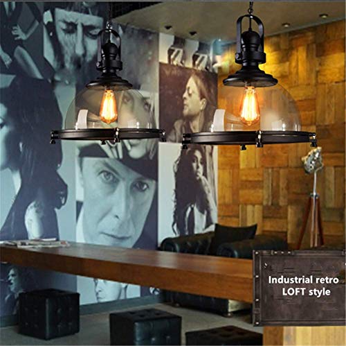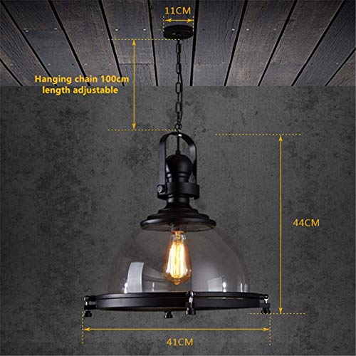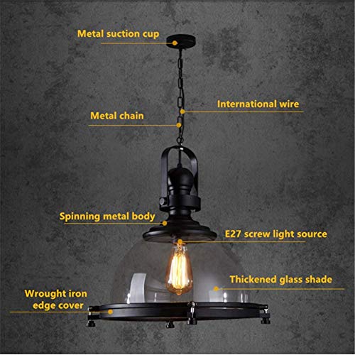 Lampadario Lampada a sospensione Testa singola a sospensione Vernice per cottura nera Ferro battuto Trasparente Pentola di vetro Coperchio Illuminazione a soffitto E27 Diametro 16,1 pollici per