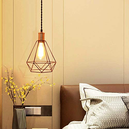 Lampadario a sospensione vintage con interruttore e spina, Lampadario a sospensione a forma di gabbia, in metallo industriale, a forma di diamante, E27, per cucina Salotto Camera da letto Ristorante