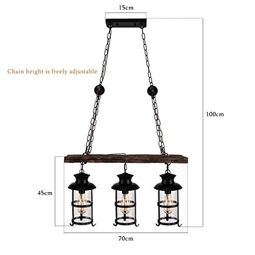 *** Design: legno naturale squadrato, finitura vintage. Tonalità di ferro nero e vetro trasparente, lampadario retrò creativo. Questo elegante lampadario è perfetto per temi rurali o industriali. Lo stile moderno industriale e moderno combina l'attuale illuminazione industriale retrò molto elegante.