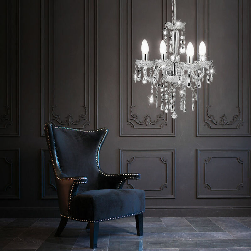 Descrizione Questo lampadario dal design elegante promette una luce radiosa. Un vero colpo d'occhio in ogni stanza! Questo elegante il lampadario è composto da una combinazione di decorazioni in cromo e acrilico argento Il lampadario fornisce un'illuminazione sufficiente con le lampade giuste e illumina il soggiorno, la sala da pranzo e le zone di ingresso in modo armonioso Rispetto alle normali luci, i faretti a LED consumano solo una quantità minima di elettricità e hanno un consumo persino inferiore rispetto alle lampade a risparmio energetico. Questo protegge l'ambiente e il tuo portafoglio. Comprese lampade LED di alta qualità da 12 watt (4x 3 watt) a risparmio energetico! Dettagli • tipo di lampada: lampadario • materiale: cromo, decoro acrilico • colore: argento • dimensioni DxH: 420x495 mm • Altezza totale: 1350 mm • attacco: 4x E14 • lampadine incluse: sì • lampadine: 4x LED 3W • colore luce: bianco caldo • flusso luminoso totale: 4x 198 lumen (totale 792 lumen)