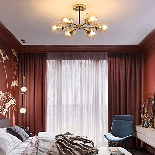 Lampadario Sputnik Modern Art, Plafoniera Molecolare Lampada da Soffitto con Paralume in Vetro a Globo Plafoniere Bar Plafoniera Lampadario Domestico,Marrone,6 Luci