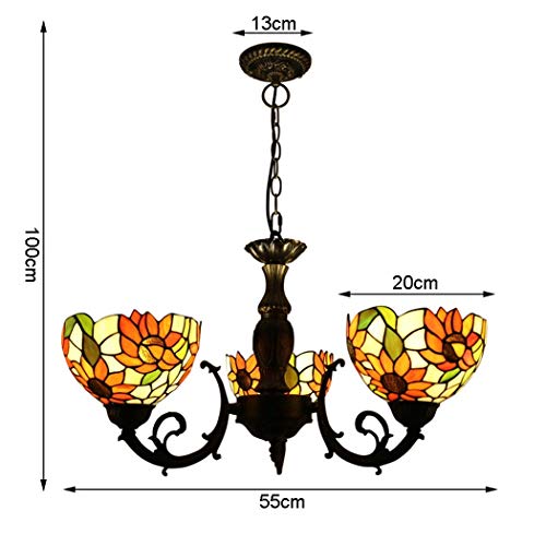 Lampadario in stile Tiffany, Plafoniere in vetro colorato a 3 teste, Plafoniere a sospensione retro decorazione Per sala da pranzo Salotto Camera da letto, E27, MAX60W (colore: 5)