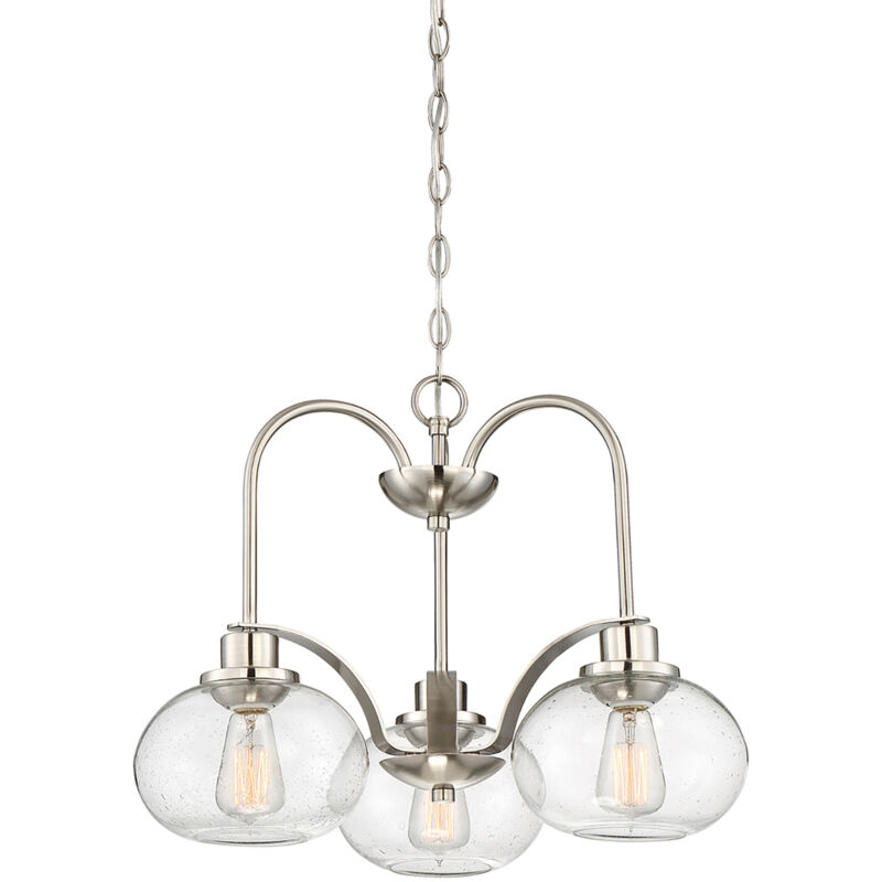 Collezione Trilogy STILE THOMAS EDISON Lampadario a 3 luci - Nichel Spazzolato. Ora disponibile in nichel spazzolato, Trilogy prende vita se utilizzato con lampade a filamento LED in stile Thomas Edison. Dal design nostalgico e chic, con il paralume in vetro trasparente, Trilogy conferisce all'eleganza moderna lo stile del vecchio mondo.