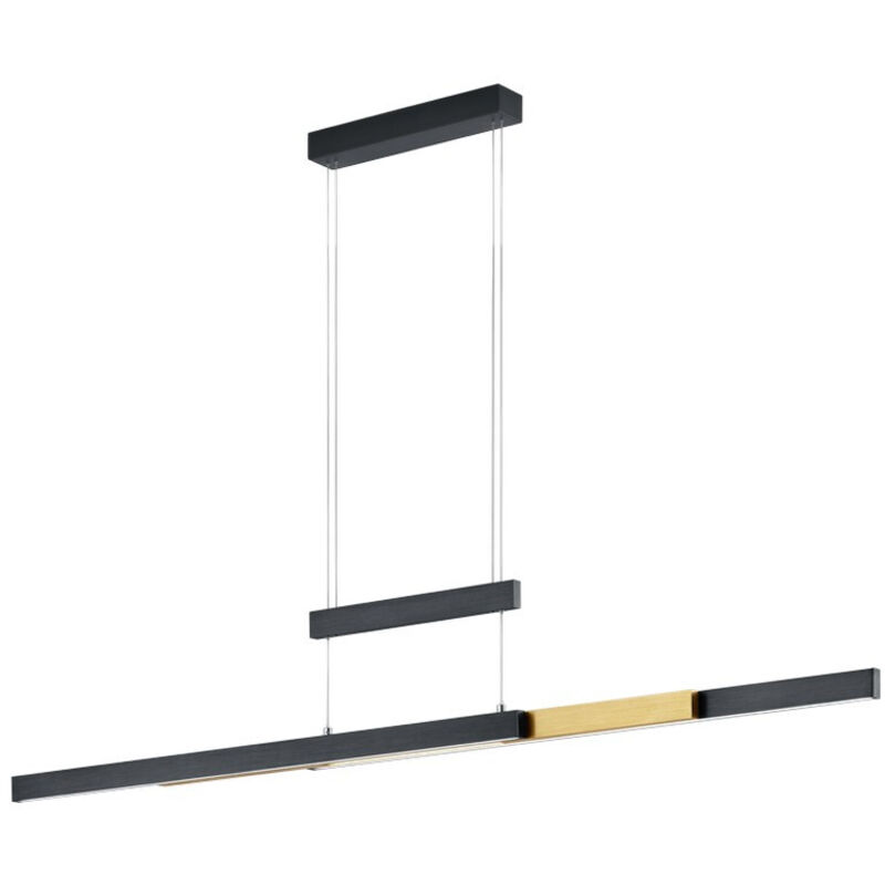 Il lampadario a sospensione TRAJAN di Trio Lighting presenta un profilo sottile e lineare in metallo finitura nero opaco e ottone. Le bacchette Led estendibili in larghezza diffondono luce verso sopra e verso il basso, sensore touch incluso. Cavi regolabili in lunghezza che consentono di regolare il diffusore in altezza in base le proprie esigenze. Dotata di modulo led integrato SMD LED 45 watt, resa luminosa 5300 lumen, temperatura colore da 2700k a 5000k (luce calda, fredda e naturale). Il colore della luce (ovvero la temperatura Kelvin) può essere regolato a diversi livelli grazie al dimmer integrato. Non compatibile con dimmer esterno. Un lampadario tecnologico ed estremamente moderno che offre una luce diretta e uniforme, ma anche indiretta e soffusa, in modo da creare sempre l'atmosfera ideale per ogni occasione. Versatile, perfetto soprattutto per uffici e studi ma anche per spazi abitativi, da collocare ad esempio sopra la penisola o il tavolo della cucina o sala da pranzo.