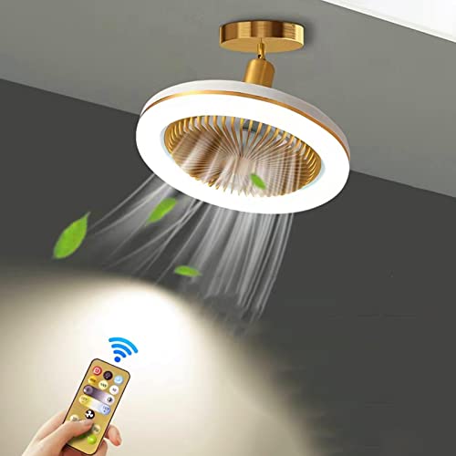 Lampadario ventilatore piccolo LED silenzioso dimmerabile, ventilatore da soffitto con luce telecomando, E27 Oro plafoniera a ventola Angolo regolabile camera da letto lampada da soffitto cucina Timer