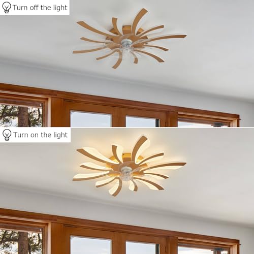 【Motor DC reversible】Nuestro inteligente lámpara techo ventilador tiene dos modos de rotación. La rotación hacia adelante trae aire fresco y fresco, mientras que la rotación inversa circula suavemente el aire, como una serenata tranquila. Además, hay 6 velocidades de viento ajustables, función de apagado de temporización de 1/4/8 horas de APP, para crear un país de los sueños pacífico y dulce para usted.