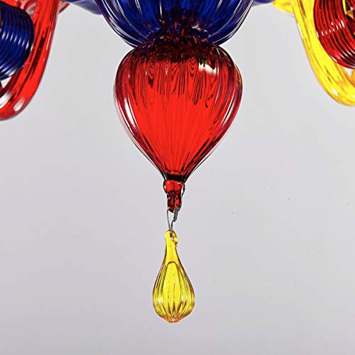Lampadario Vetro Soffiato Veneziano Arlecchino In Su Multicolore, 10 Luci, Montatura Cromo