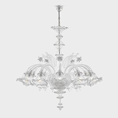 Lampadario Vetro Soffiato Veneziano Atena Trasparente, 10 Luci, Montatura Cromo
