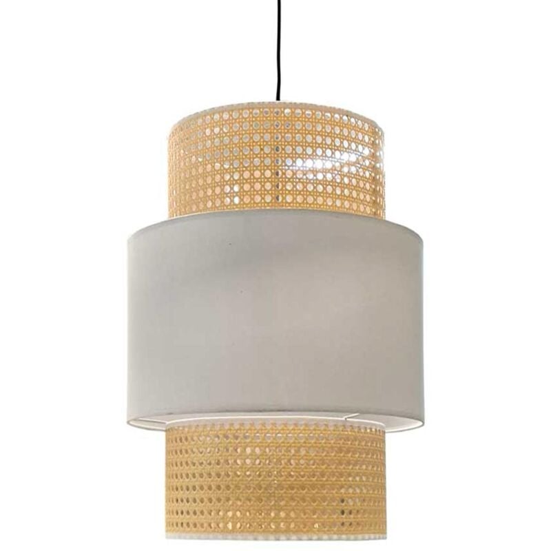 Lampadario da interno realizzato con paralume in vimini Bicolore. Questo lampadario dalle linee semplici è indicato per riportare freschezza e leggerezza in ogni ambiente rendendolo ideale non solo per salotti o soggiorni ma anche per locali o bar. Lampadario in Vimini Dimensioni: 30 x 44 cm Colore: Beige e Bianco Adatto per uso interno Con una luce