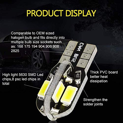 LED T10 W5W 12V - Ogni lampadina ha 8 SMD da 5630, colorazione 6000K effetto xeno, angolo di illuminazione a 360 gradi, hanno una maggiore durata e un maggiore risparmio energetico.