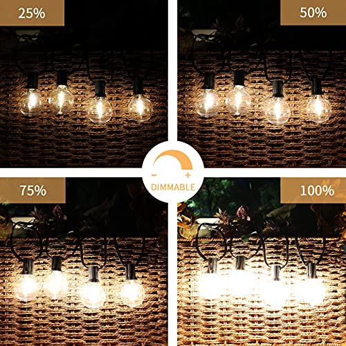 ☀【Luci a stringa bianche calde da 2700 K】: lunghezza 50 piedi con 25 prese sospese, 25 + 1 lampadine in plastica E12 da 1 W (la distanza tra la spina e la prima lampadina è 250 cm e la distanza tra le lampadine è 51 cm). La potenza massima di questa luce a festone dimmerabile intelligen