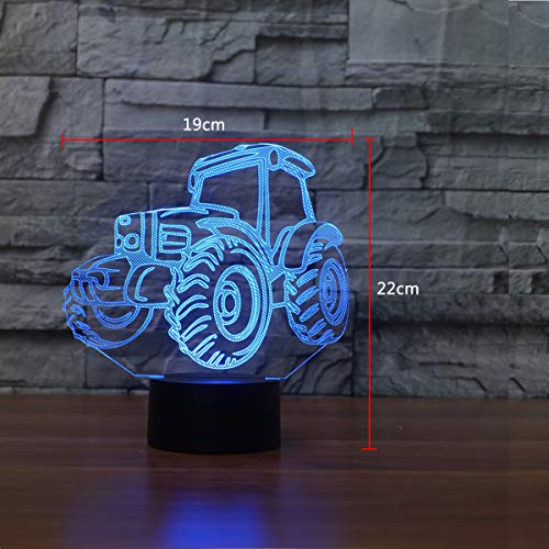 Lampade 3D Illusione Ottica Luce Notturna, SISYS Deco Lampada LED da Tavolo Illuminazione Luce di Notte 7 Colori Controllo Tattile Lampada Decorazione da Comodino con Cavo USB, Trattore