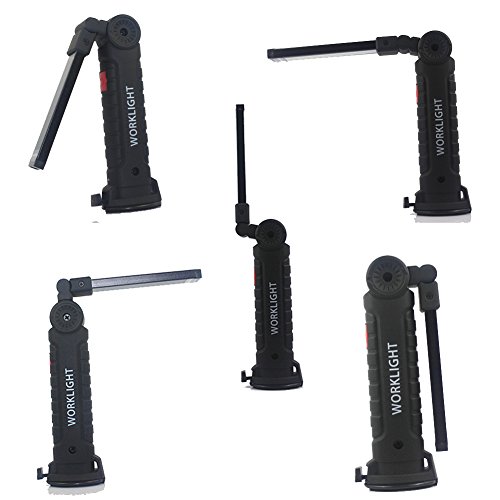 Rotazione a 360 gradi e pieghevole: la luce da lavoro può essere ripiegata in avanti e all'indietro, ruotata di 360 ° per un'ampia area di illuminazione. Il design Grip pieghevole, compatto e antiscivolo lo rende facile da trasportare e da riporre. Max 5W 300LM COB LED Garantisce la luminosità desiderata.