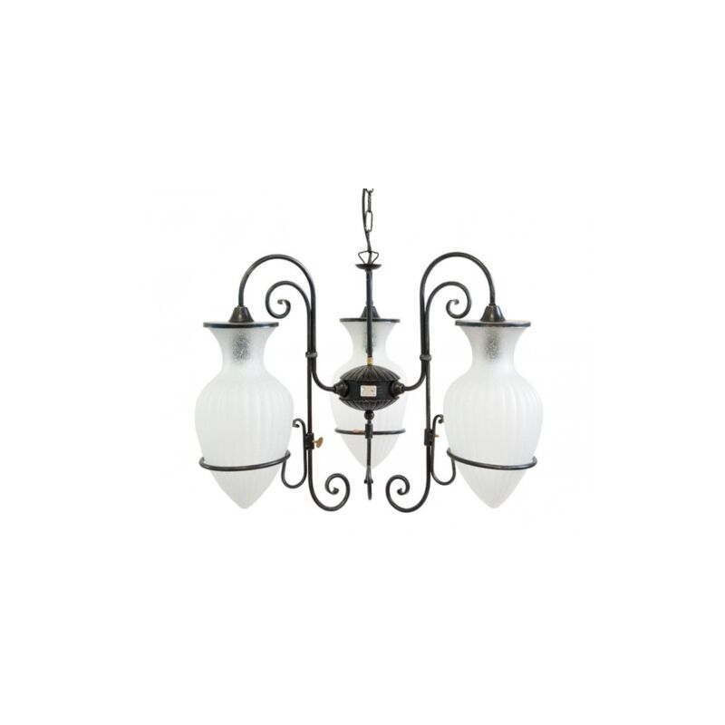 LAMPADE LINEA ANFORA LAMPADARIO A 3 LUCI CON GIARA IN VETRO GHIACCIO Una luce soffusa e delicata, un corpo evanescente contrastato da una struttura in metallo abilmente lavorato a mano. Per respirare l'atmosfera dell'antica Roma, dove le anfore erano elementi indispensabili nella vita quotidiana, Cruccolini ha riadattato la loro funzione rendendole degli originali elementi decorativi, che illumineranno con eterea eleganza le vostre serate per creare l'atmosfera giusta nei vostri momenti speciali. L'anfora da contenitore di alimenti si trasforma in contenitore di luce Da abbinare agli altri complementi della collezione. Dimensioni: Ø 60 ↔ x 55 ↑ cm Paralume: Giara in vetro ghiaccio Massima estensione: 100 ↑ cm Lunghezza catena: 50 ↑ cm Consiglio d'uso: Lampadario particolarmente indicato per saloni e camere da letto. Ottimo anche per hotel e ristoranti. 3 lampade E27 max 60 W - IP40 - Uso interno - 220-240 V / 50 Hz - Lampadine escluse - Garanzia 5 anni