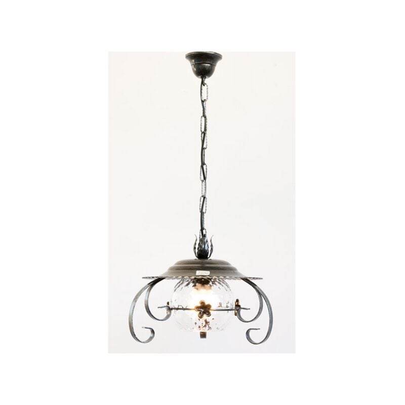 LAMPADE LINEA TAVERN LAMPADARIO BALLOTON CON CATENA 1 LUCE Agli amanti dei sapori rustici, Cruccolini propone un'intera gamma di lampade in grado di ricreare le atmosfere mistiche ed accoglienti dei casolari di campagna. La fragilità del vetro e la forza del ferro si uniscono nelle lampade “Tavern”, dando vita ad oggetti dal design unico ed originale. Guizzi di luce si diffondono dal paralume in vetro soffiato Balloton, che consentono un'illuminazione diffusa per un'atmosfera romantica e delicata. Ogni dettaglio di queste lampade è stato selezionato, forgiato ed assemblato con cura, per ottenere un risultato impeccabile sia nell'estetica che nella funzionalità. La passione italiana per le cose belle e di qualità, trova soddisfazione in queste opere artigianali di alto livello. Abbinabile con gli altri complementi della collezione. Dimensioni: Ø 33 ↔ x 33 ↑ cm Paralume: Vetro soffiato Balloton Massima estensione: 80 ↑ cm Lunghezza catena: 50 ↑ cm. Consiglio d'uso: ''Tavern'' è una