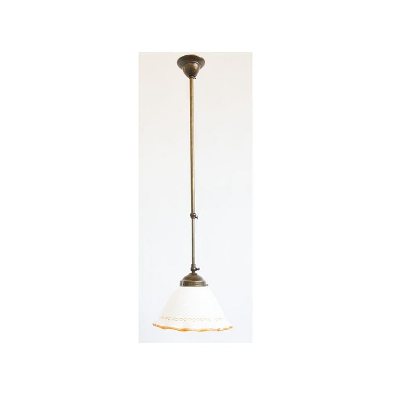 LAMPADE LINEA VINTAGE LAMPADARIO TELESCOPICO IN OTTONE BRONZATO Un'estetica di carattere, decisa e personale, che si ispira al gusto di epoche passate, una collezione di lampadari ed applique dallo stile Vintage, che esprime con forza la raffinatezza racchiusa in materiali di pregio. Strutture in ottone bronzato impreziosite da paralumi in ceramica, regaleranno alla vostra casa un look speciale ed inimitabile. Il sistema telescopico permette di regolare l'altezza del lampadario;