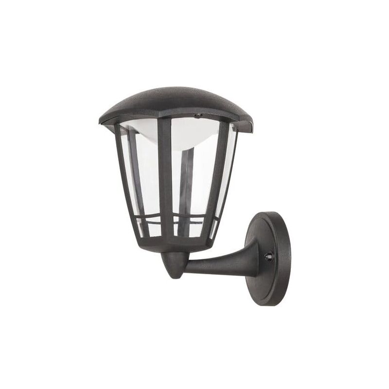 Stile di illuminazione: Standard Temperatura colore: bianco caldo Flusso luminoso della sorgente luminosa (lm): 500 Tecnologia LED: sìLivello di protezione IP: IP44 Colore lampada: nero opaco Colore paralume: trasparente Materiale lampada: plastica Materiale paralume: plastica Durata della sorgente luminosa ( h): 25000 Classe energetica della sorgente luminosa: GVoltaggio applicato: 230V, 50HzSpecifiche apparecchio di illuminazione: LED 8Distanza dalla parete: 200,0Peso prodotto (kg): 0,4Colore luce (K): 3000
