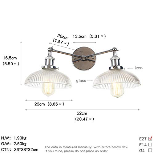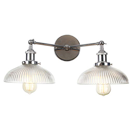 Lampade da parete, 2 luci Bagno Vanity Lights Illuminazione a parete Applique vintage con paralume in vetro regolabile per soggiorno,Cromo