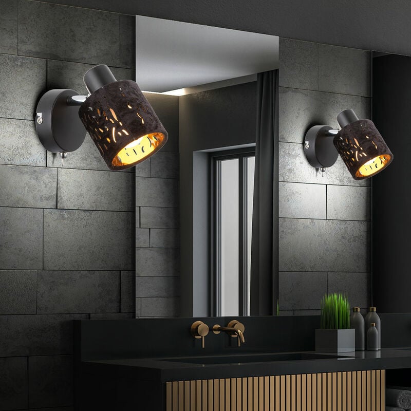 Descrizione La serie di faretti Troy, elegante ed elegante, si distingue chiaramente per la sua combinazione di materiali. a forma di cilindro e Il paralume portatile di questa lampada da parete è rivestito in velluto nero e si abbina meravigliosamente con l'interno color oro dello spot, che fornisce una luce meravigliosa. Il metallo nero dell'insegna da parete e le singole parti cromate completano il quadro e rendono questo faretto da parete un vero e proprio colpo d'occhio L'insegna da parete round ha un interruttore on/off e la presa E14 disponibile consente di utilizzare la sorgente luminosa e quindi l'intensità della luce e il colore della luce da determinare (max. 8W). La lampada non è inclusa nella fornitura di consegna. Due luci sono incluse nella fornitura! Dettagli luce • tipo di lampada: lampada da parete,• materiale: metallo, velluto• colore: nero• colore paralume interno: gold • paralume con punzonature decorative• spot mobile • interruttore • larghezza x