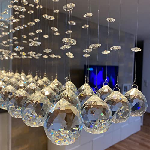 Materiali: cristallo in acciaio inossidabile e gioielli in vetro. Nella luce brillante, la sfera cristallina a facce multiple e le perline curvano le luci sfiziosamente. I fili in acciaio inossidabile sono molto robusti e durevoli.