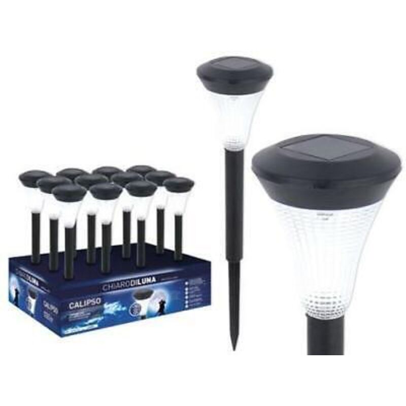 Lampada ad energia solare, 1 Led bianco. Corpo in polipropilene. Dotata di sensore crepuscolare, non necessita di installazione, senza fili, facile da montare. Dimensioni 7xH29 cm.